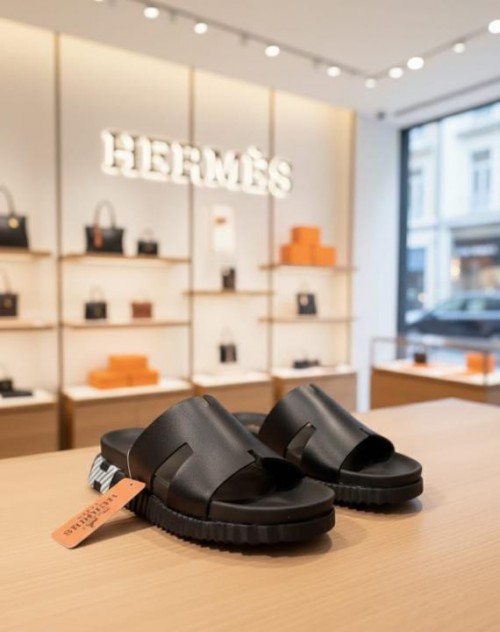 HERME S IZMIR THICK SOLE ITALIAN SLIDE BLACK 33