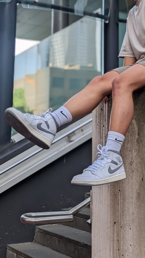 Nike Jordan Retro 1 Mid NATURAL GREY LEATHER SHINE